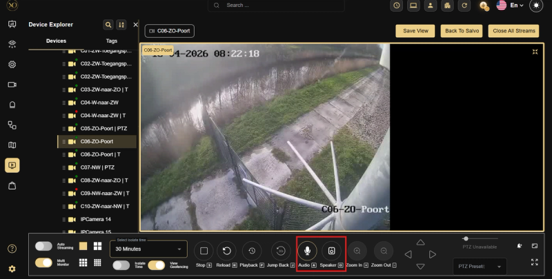 - Um über den Lautsprecher der Kamera zu sprechen, klicken Sie auf den Lautsprechersymbol.