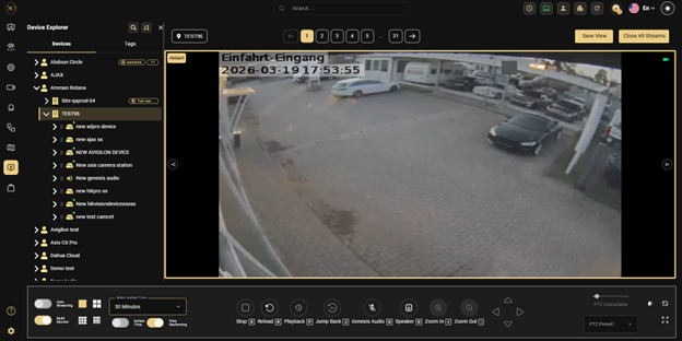 Figure 16: GCXONE Video Viewer — live stream from the Geutebrück-connected camera confirmed.