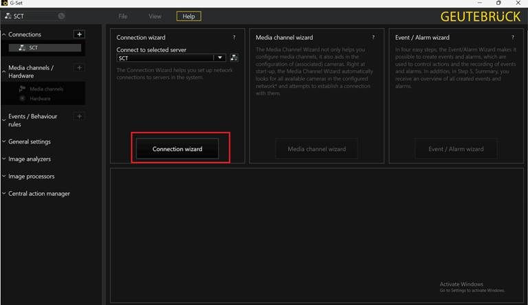 Once G-Core is running, launch the G-Set client and connect to the server using the Connection Wizard.