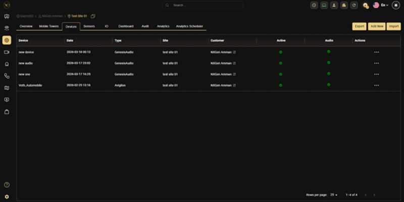 Figure 14: Site Devices tab — click Add to register a new Geutebrück device.