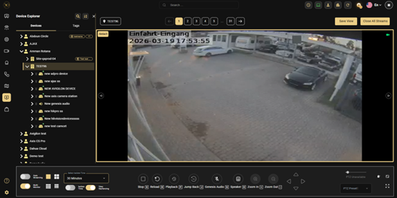Figure 16: GCXONE Video Viewer — live stream from the Geutebrück-connected camera confirmed.