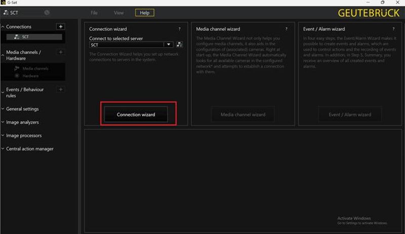 Once G-Core is running, launch the G-Set client and connect to the server using the Connection Wizard.