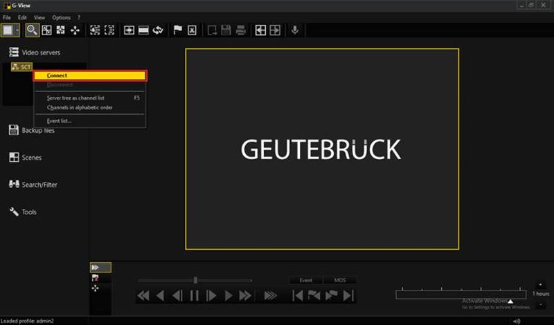 - Launch G-View. In the Video servers panel, right-click the server name and select Connect.