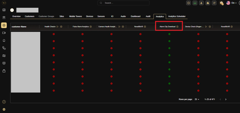 - Enable Alarm Clip Download at the Customer or Site level to automatically cover all devices beneath it.