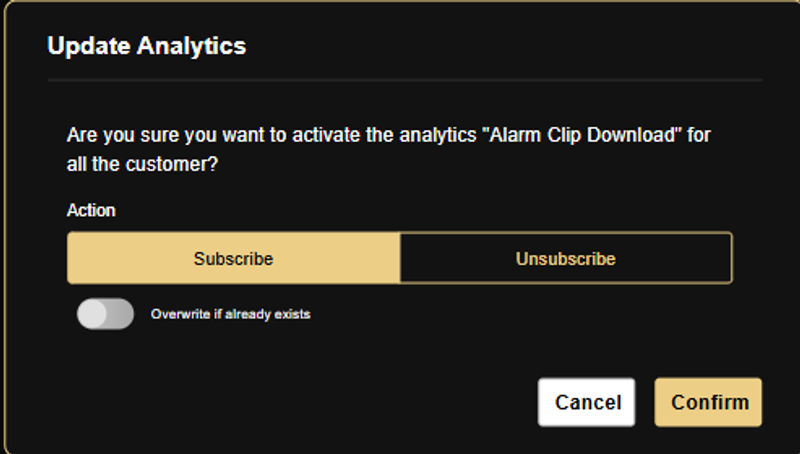 Figure 2: Update Analytics dialog showing Subscribe/Unsubscribe options
