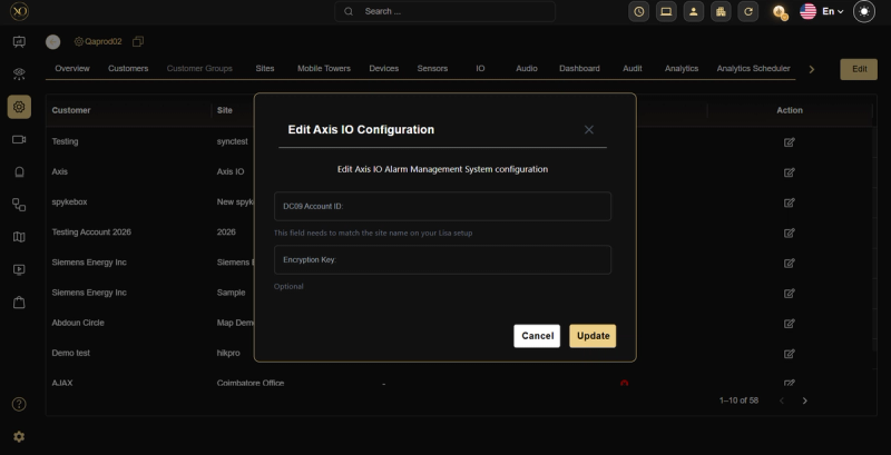 - Encryption Key — an optional shared secret for encrypted DC-09 communication. Leave this blank if encryption isn't required.
