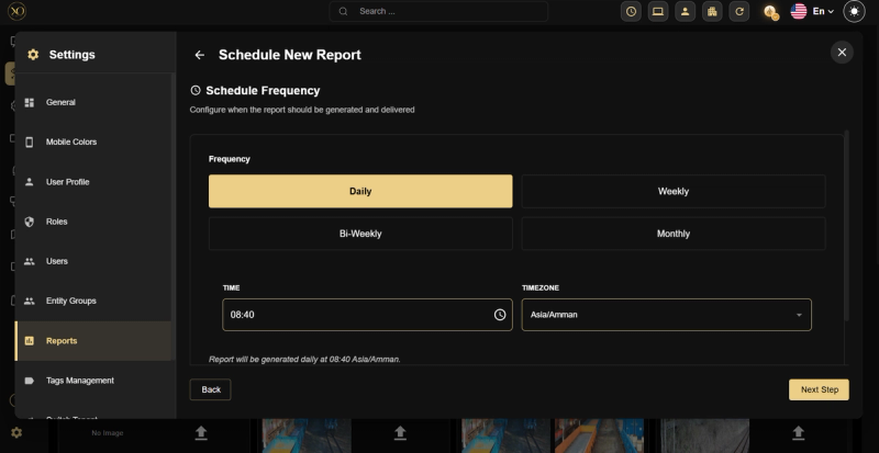 Step 5 – Schedule Frequency (Fig 11.e) Set the frequency (Daily/Weekly/Bi-Weekly/Monthly), time, and timezone.