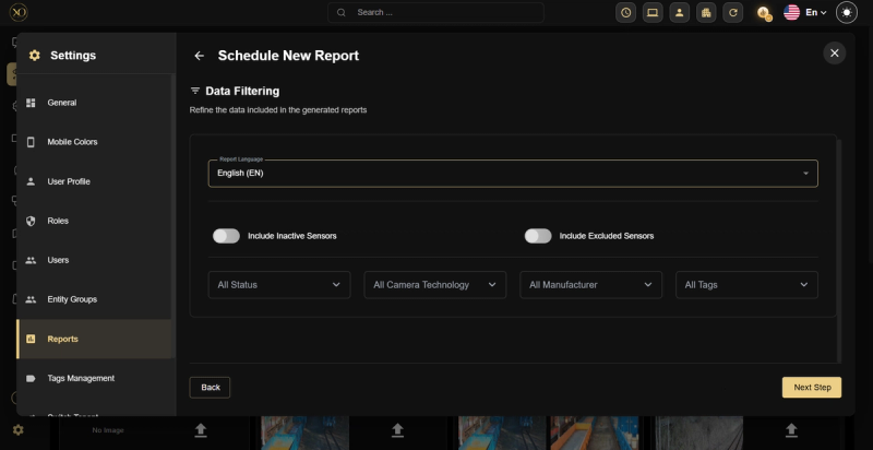 Step 4 – Data Filtering (Fig 11.d & 11.e) Refine the data by Status, Camera Technology, Manufacturer, Tags, and language.