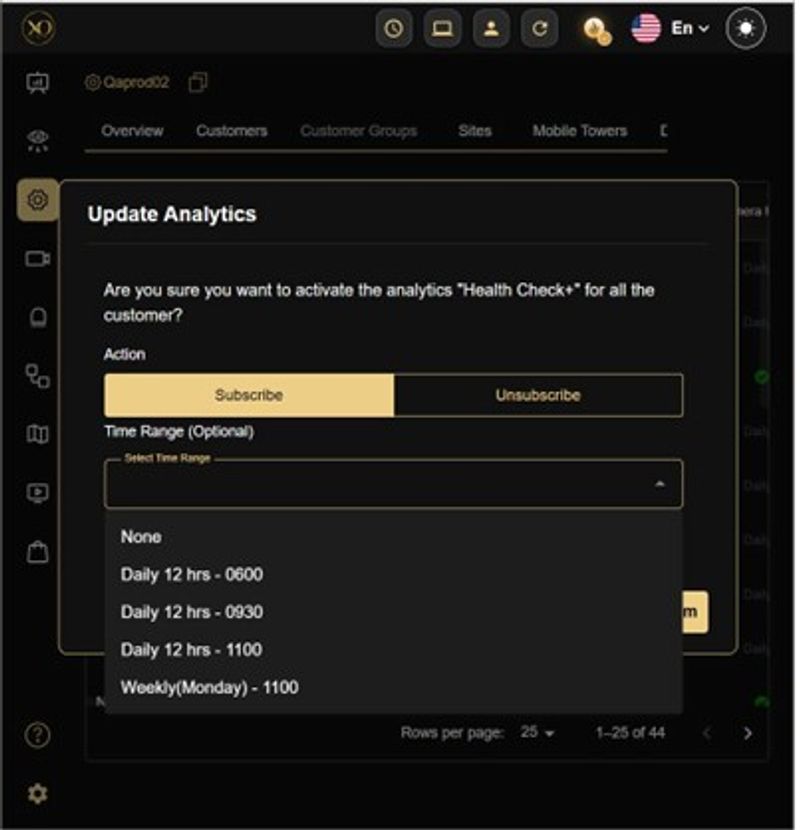 When subscribing, select a schedule from the Time Range dropdown. Available options vary by HealthCheck tier.