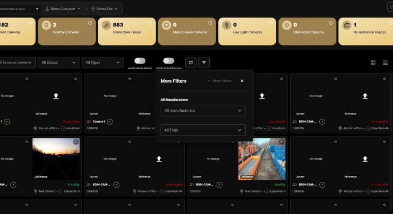 The Health Check module supports tag-based filtering, allowing operators and CSMs to scope their camera health review to specific groups of cameras rather than seeing the entire estate at once.
