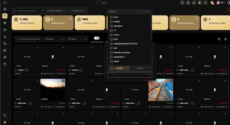 - Include: Show only cameras that have the selected tags.