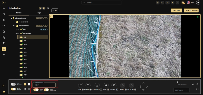 If a camera will generate excessive alarms (e.g., scheduled work in the area), open Video Viewer, open the camera options, set an Isolate Time duration, and toggle Isolate Time ON. Toggle OFF to cancel early.