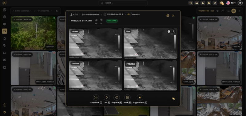 - An operator reviews an alarm clip, uses Jump Back to see what happened 30 seconds before the trigger, and classifies it as a real incident.