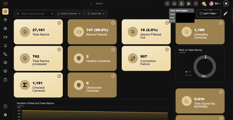 - A new operator logs in for the first time, verifies their role and email, and confirms the timezone before touching any alarm.