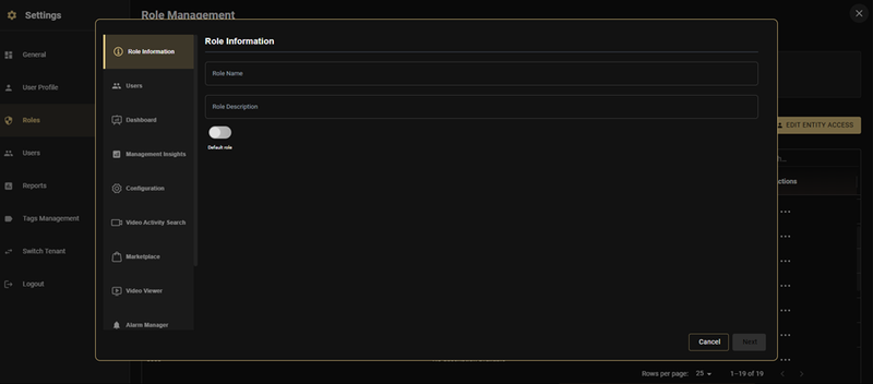 The edit flow uses the same wizard interface as role creation. Modify any step β Role Information, Users, Module Privileges, or Entity Assignments β then save. Changes affect all users with this role immediately.