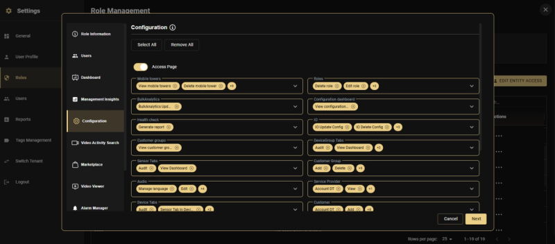 Full Access for All Entities (toggle ON): Users assigned this role will default to full access for all Customers, Sites, Towers/Devices, and Cameras.