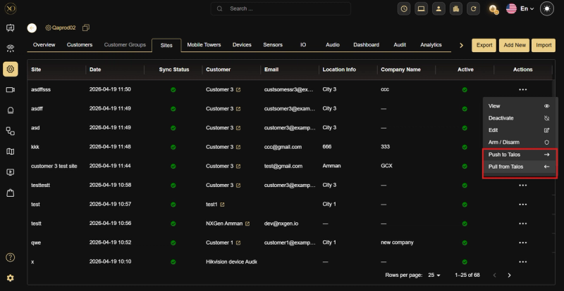 GCXONE and Talos are designed to work as a unified system. Site Synchronization ensures that all site data created or updated in GCXONE is automatically reflected in Talos — keeping both platforms consistently aligned without manual intervention.