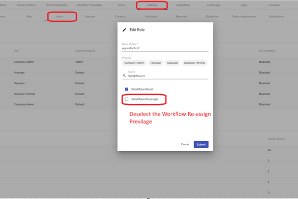 - Search for Workflow:Re-assign and deselect the permission.