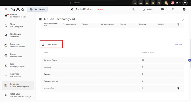 If an operator can access GCXONE but receives a Permission Denied error in Talos, ensure they have been assigned a Talos Role under Company β Users settings.