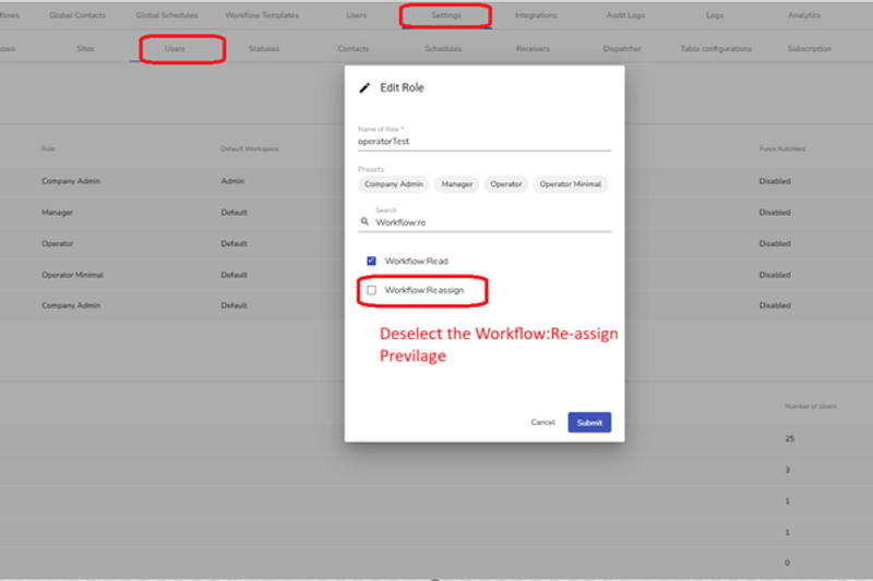 - Search for Workflow:Re-assign and deselect the permission.